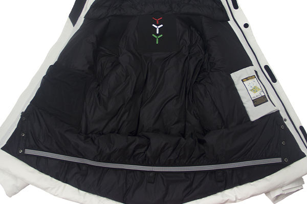 現在我們一起說說滑雪服的一些功能性制作特點,它與沖鋒衣的區別:滑雪上衣在內部有收腰 (防風裙 )設計,是用來防止灌雪的,褲角也會有這樣的松緊收口;但是呢滑雪服對防水的要求通常沒有沖鋒衣高,普通的拒水就可以了,因為你去滑雪肯定是在滑雪場吧,防護措施都是比較安全的,就算下大雨也會有避雨處的。雙板和和單板服裝的設計也有區別,一般雙板服的褲腳會呈微喇的設計并且有拉鏈,方便套在雪鞋上,內側有加固,防止雪板的板刃刮破。單板服則更寬松些,方便做動作,上衣更多采用套頭的設計,褲子多是直筒?;┓鸵话氵\用于滑雪場上就可以了。