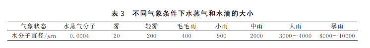 動態防水性能檢驗主要是評價沖鋒衣面料在運動狀態中的拒水性。我們可以根據不同氣候條件下水蒸氣、水滴大小來設置實驗。其中邦迪斯門淋雨法可以模擬不同氣候中的雨滴大小和雨量,具體見下圖,但也沒有檢驗標準。