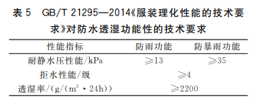 根據GB/T 21295-2014《服裝理化性能的技術要求》,沖鋒衣只有達到一下指標才能算具備防水、透濕的功能。