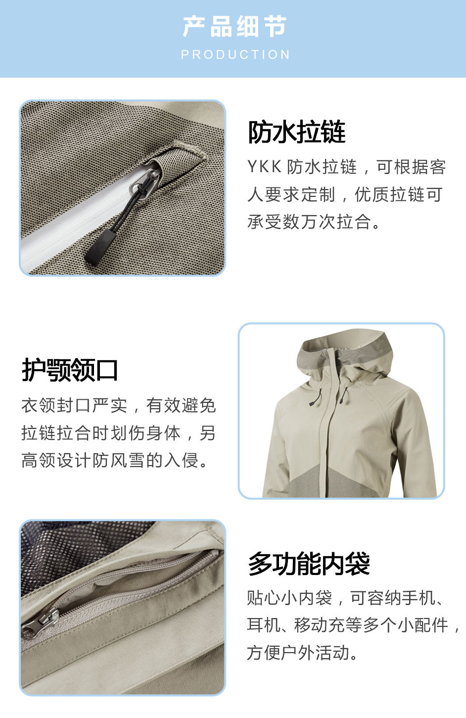 • 多功能內袋戶外沖鋒衣生產具貼心小內袋,可容納手機、耳機、移動充等多個小配件,方便戶外活動。