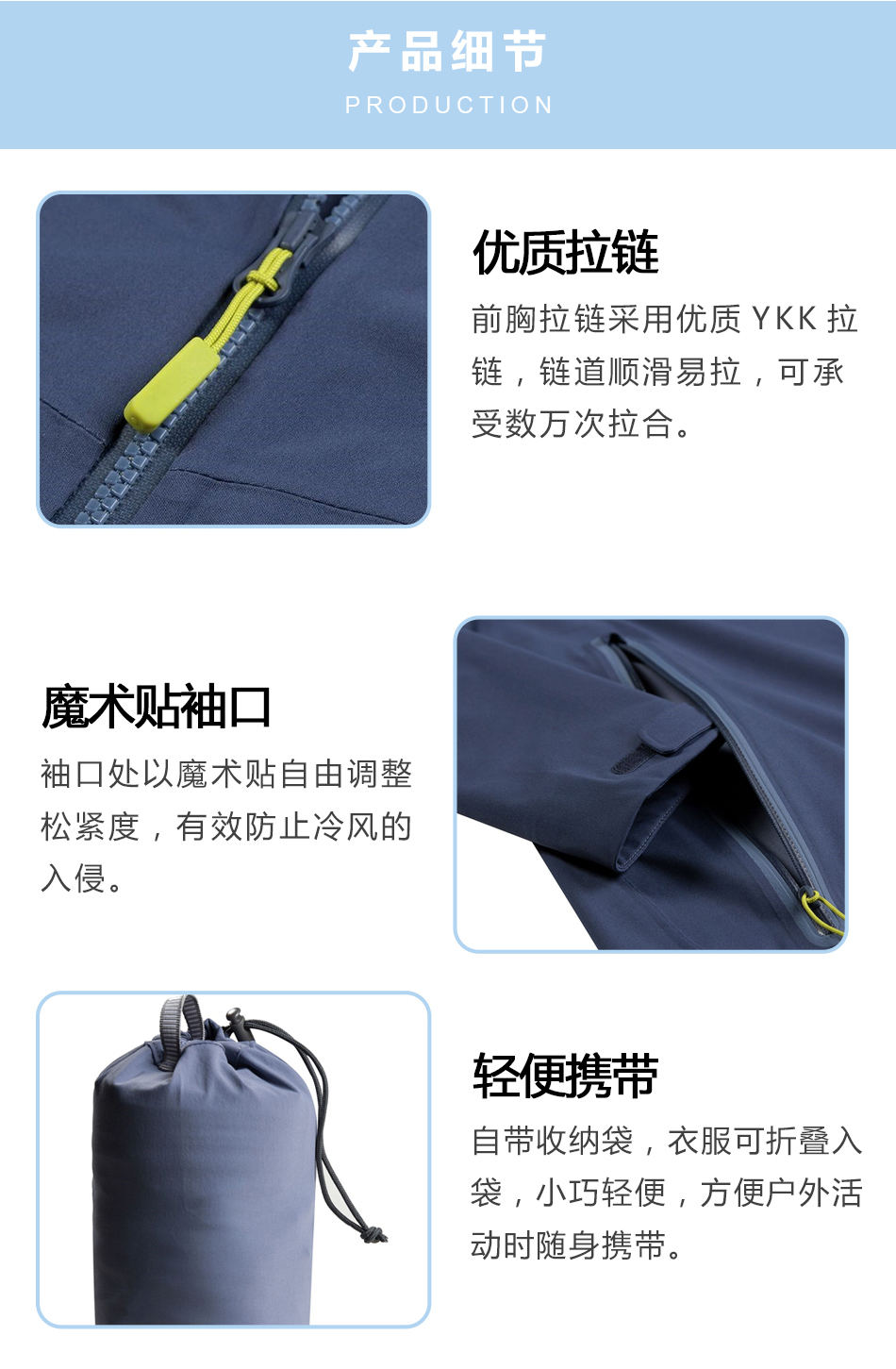 • 輕便攜帶:自帶收納袋,衣服可折疊入袋,小巧輕便,方便戶外活動時隨身攜帶。