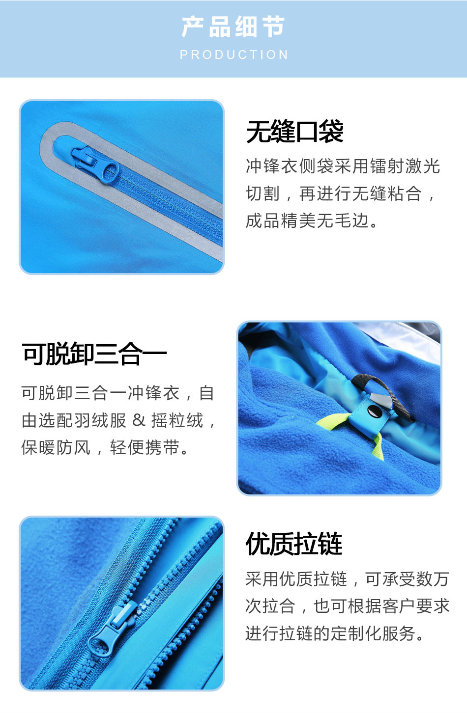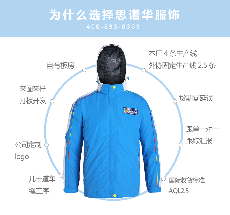 可脫卸沖鋒衣定制 擁有專業生產設備,產品出貨效率快