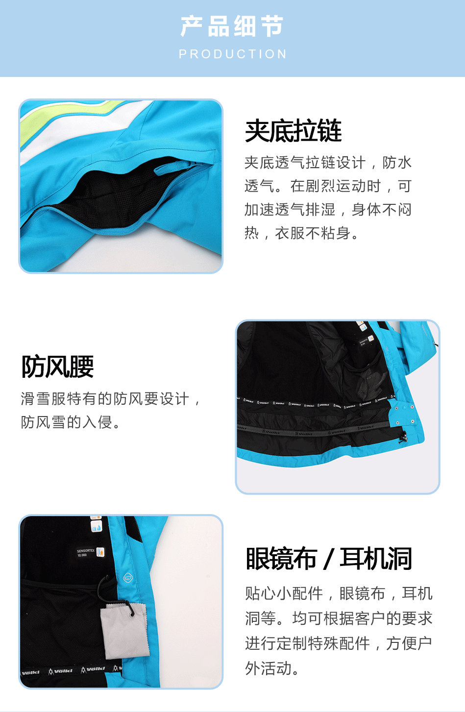 防風腰:滑雪服特有的防風要設計,防風雪的入侵。
